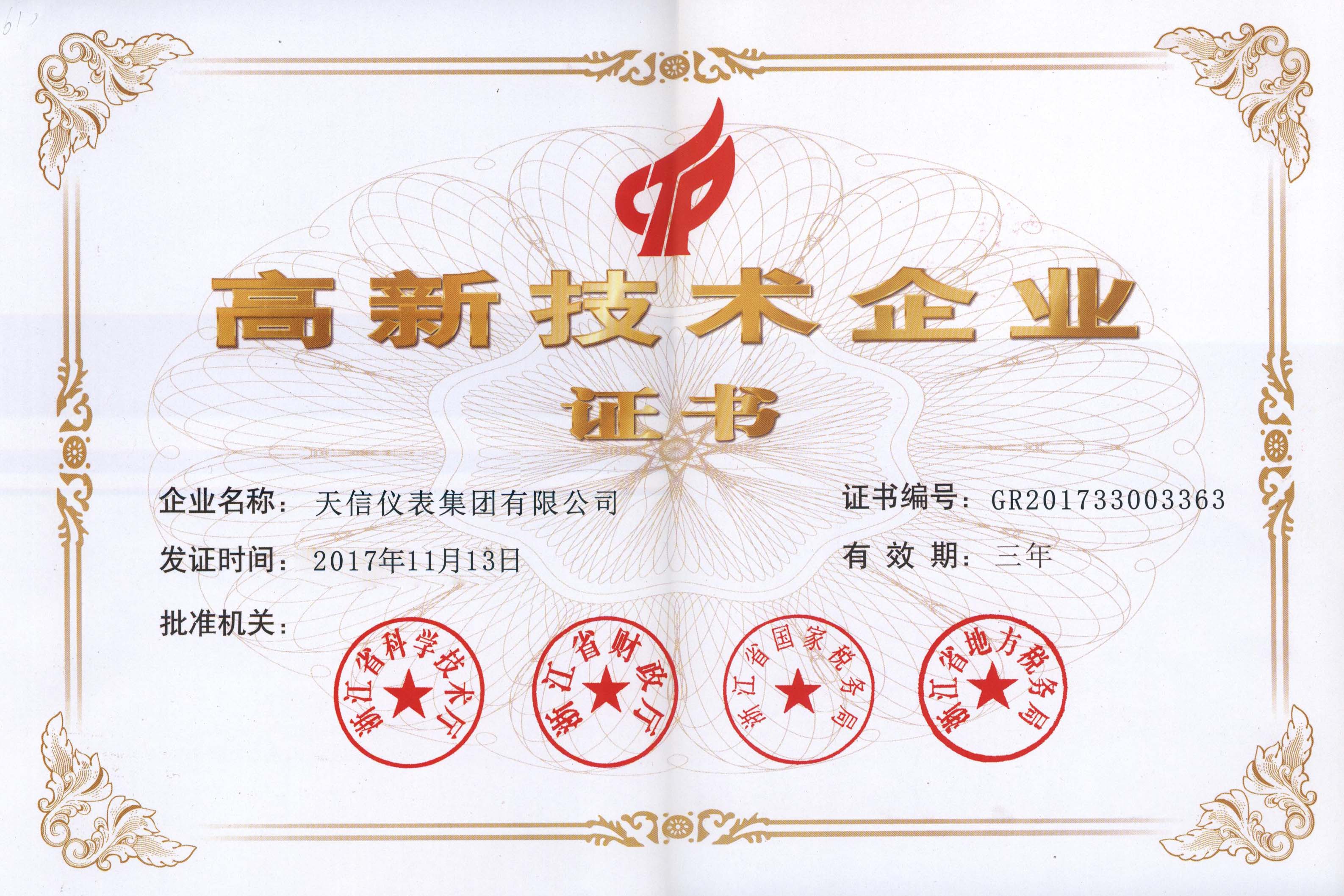 • 高新技術(shù)企業(yè)證書(shū)