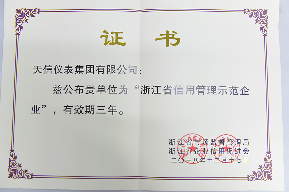 • 浙江省AAA級(jí)“守合同重信用”企業(yè)證書(shū)