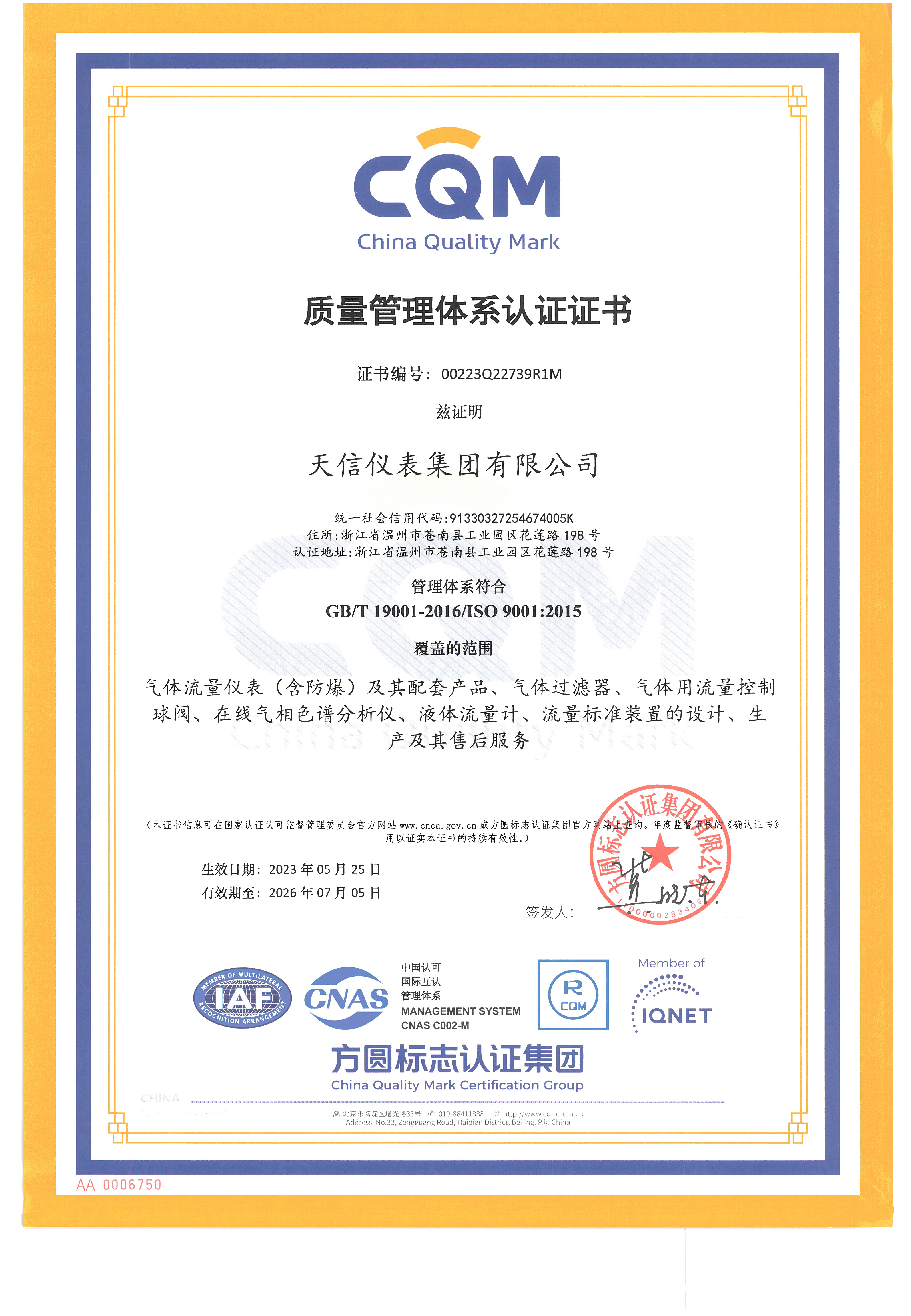 • 質(zhì)量管理體系認(rèn)證證書(shū)