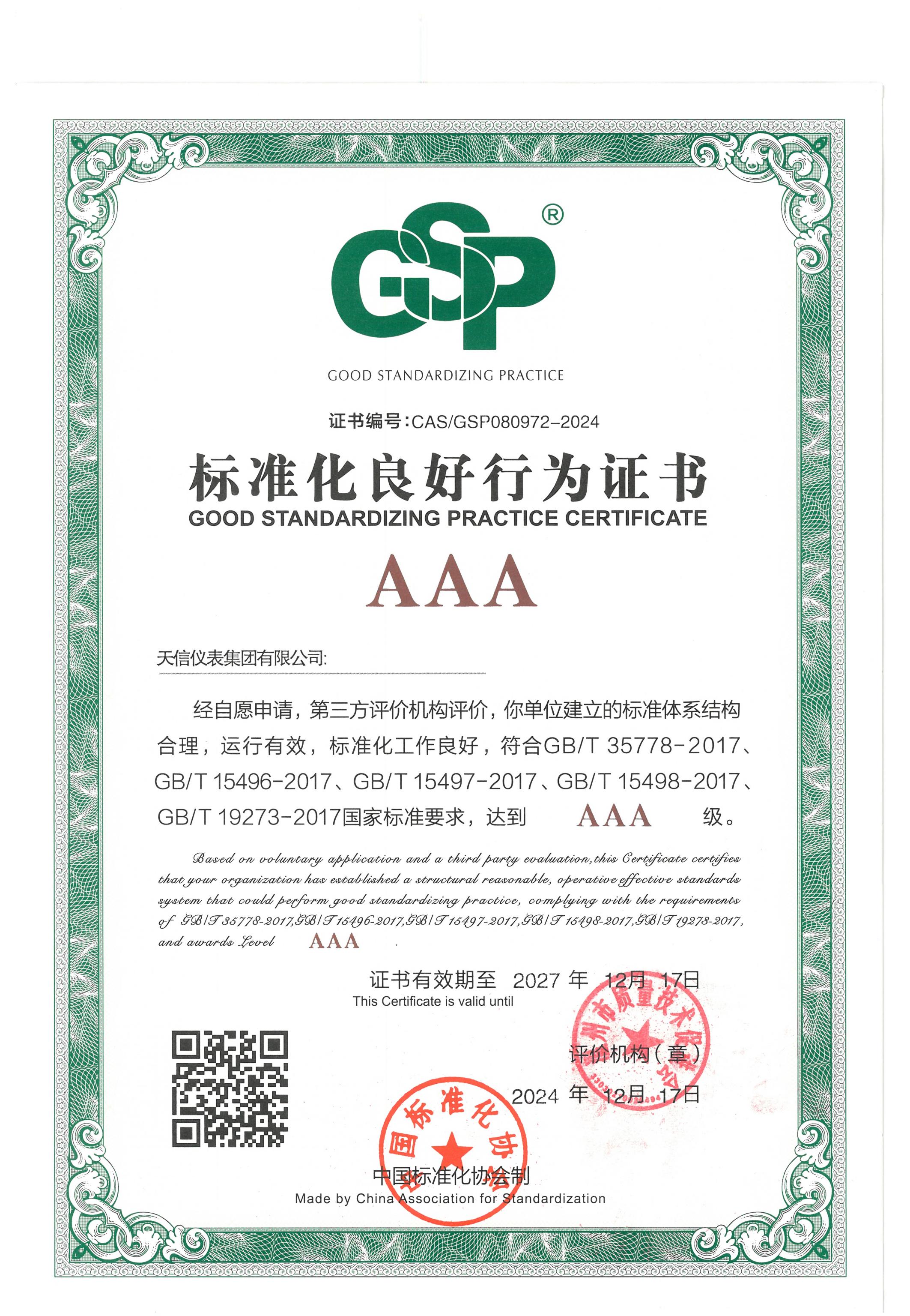 標(biāo)準(zhǔn)化良好行為證書(shū)