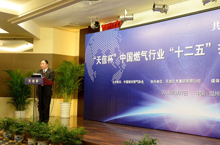 由中國城市燃氣協會主辦、天信儀表集團有限公司協辦的“天信杯”中國燃氣行業“十二五”技術裝備創新高峰論壇和有獎征文活動發布會,于2015年3月7日在溫州瑤溪大酒店隆重舉行。中國城市燃氣協會理事長王天錫、秘書長遲國敬,中國儀器儀表行業協會專職副理事長李躍光,浙江燃氣會秘書長王莉莉,天信儀表集團總裁范叔沙,以及來自業界的專家和領導100多人出席論壇。