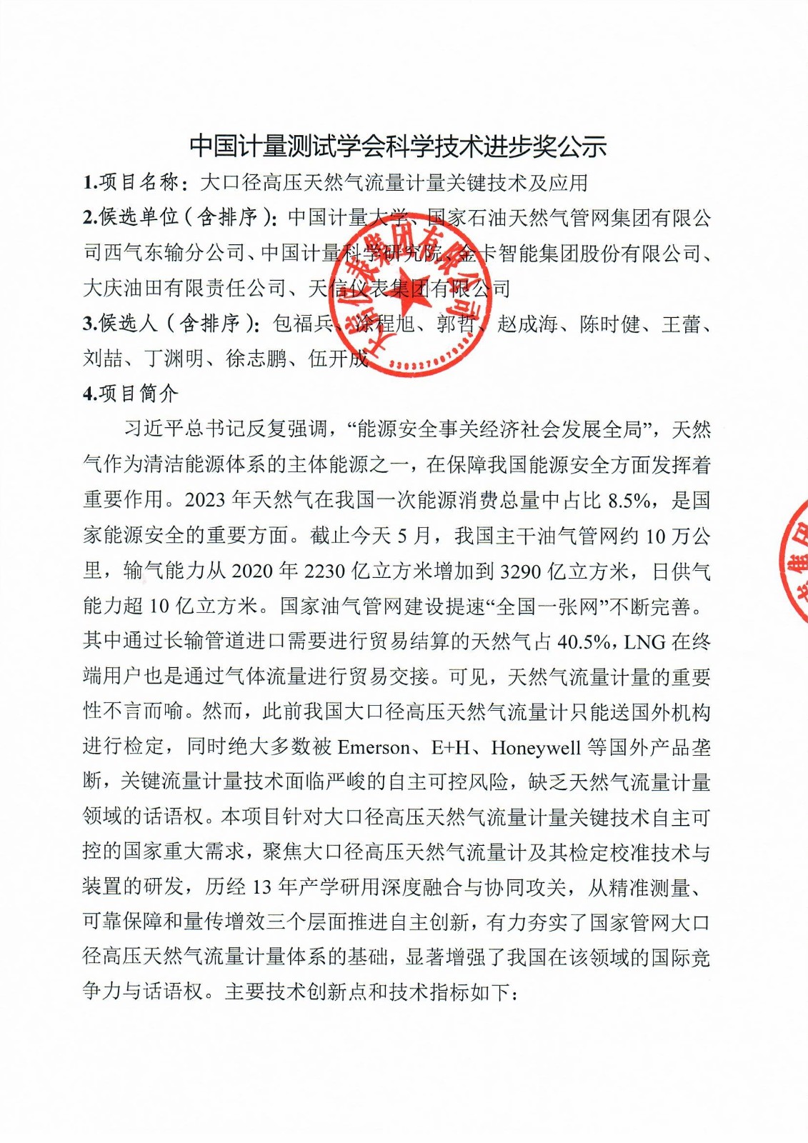 中國計量測試學會科學技術進步獎公示